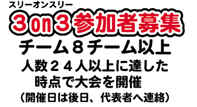 3月23日(日)に行われた、3on3大会の結果をお知らせします。