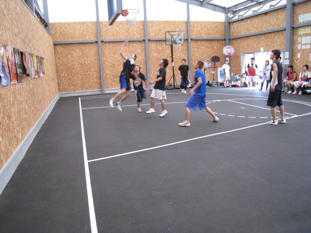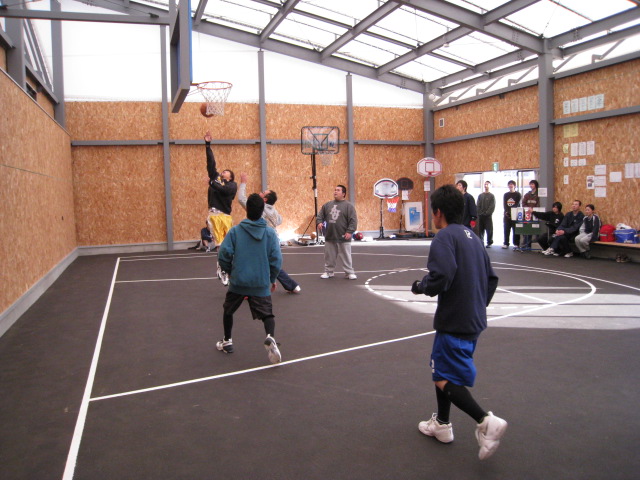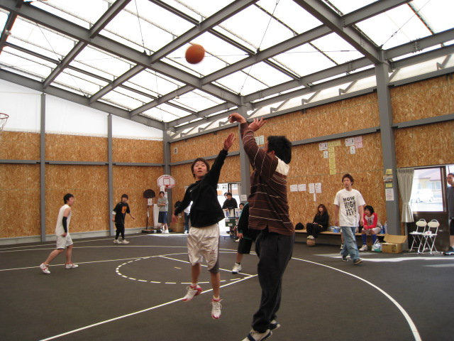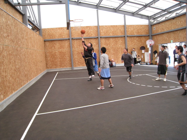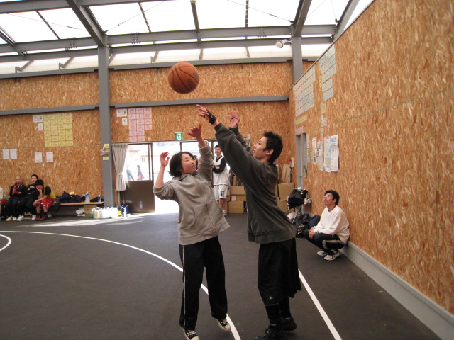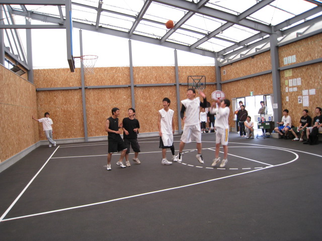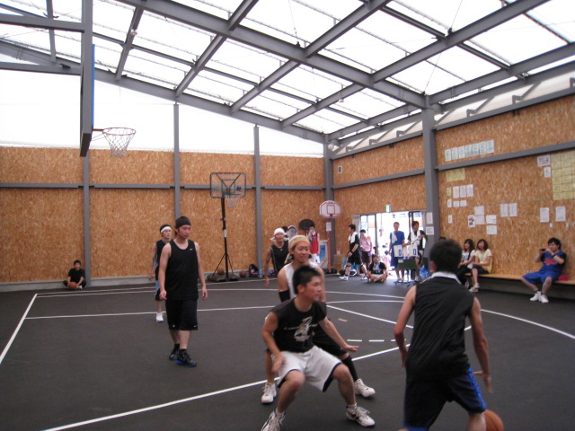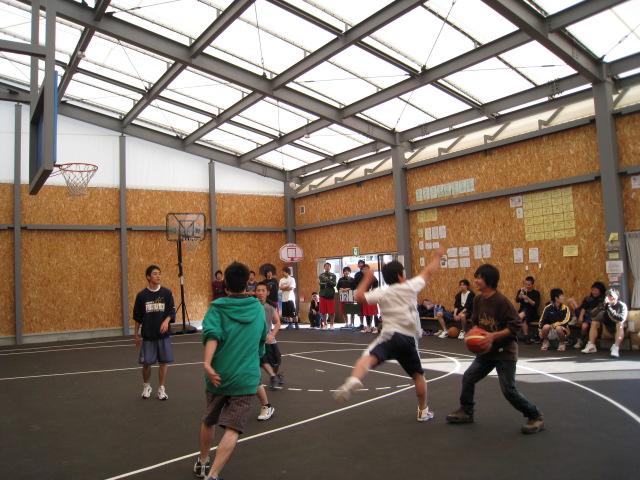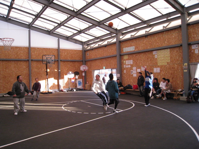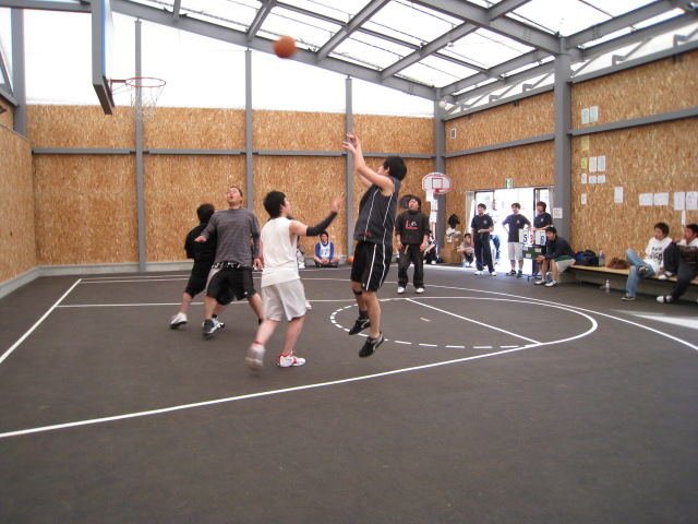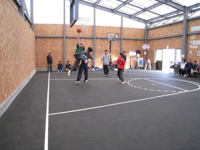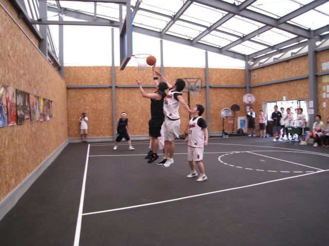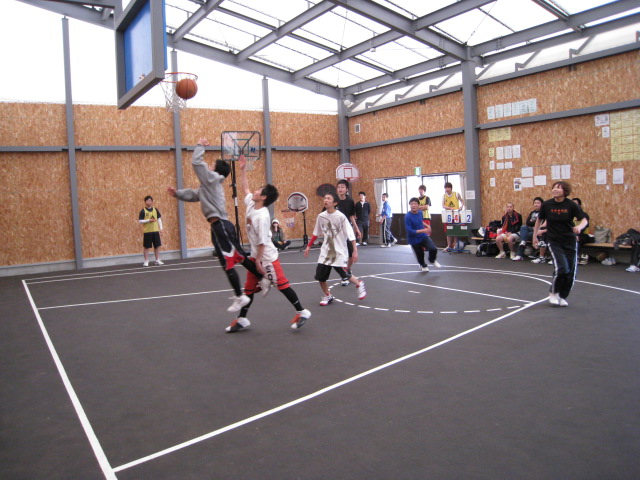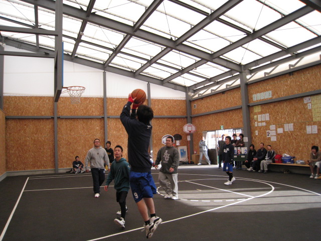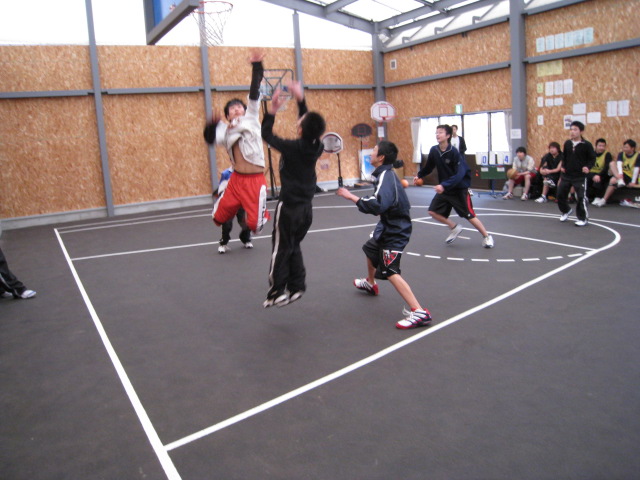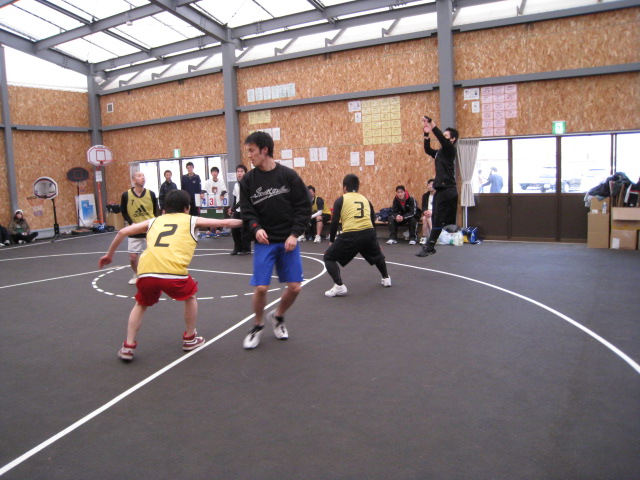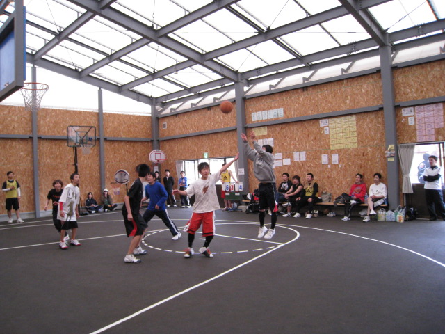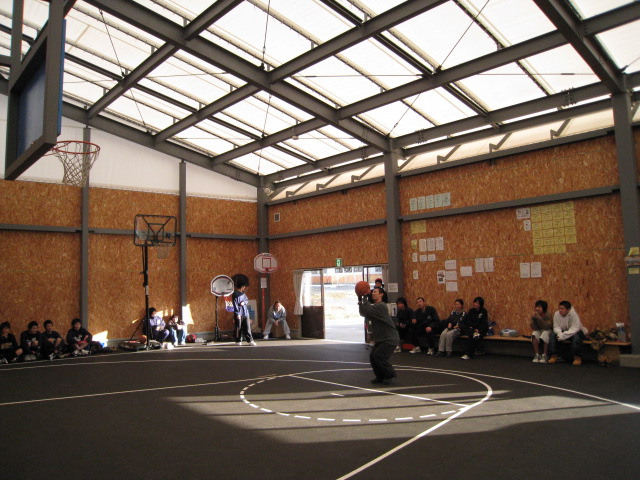 この大会は「バスケがやりたい人」なら誰でも参加できる大会で、最年長はスクラッチチームの3人で129歳(平均43歳)、下はバ○オ○ザ○ドチームの3人で45歳(平均15歳)、いわて青年○○○○チームは男女混合でのエントリーと、2時間半ほどでしたがみんなでバスケを楽しみました。