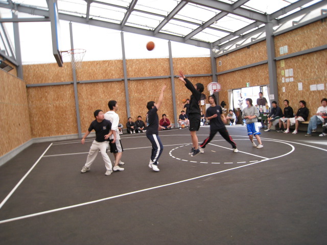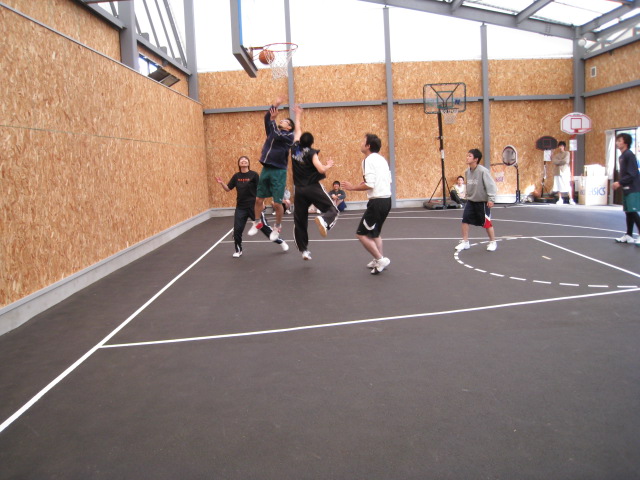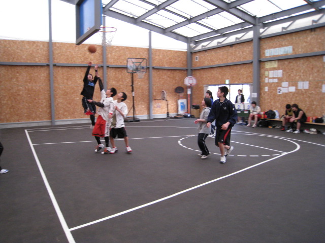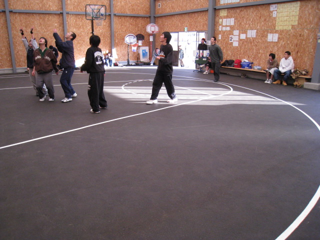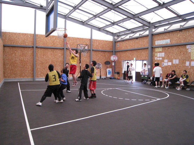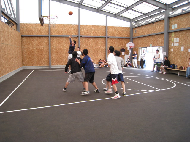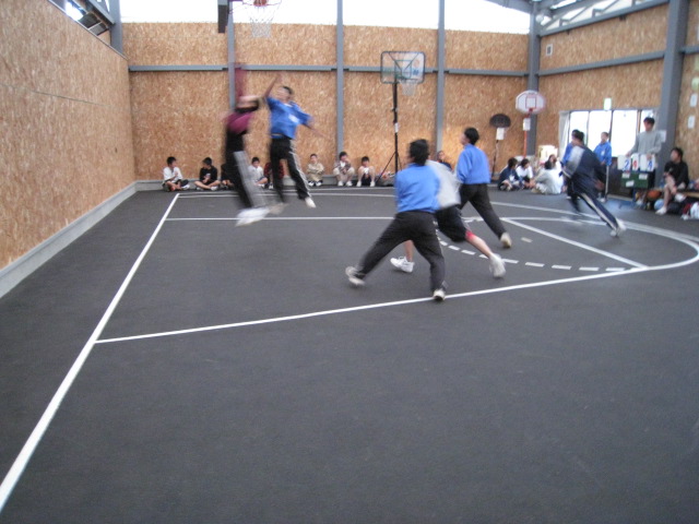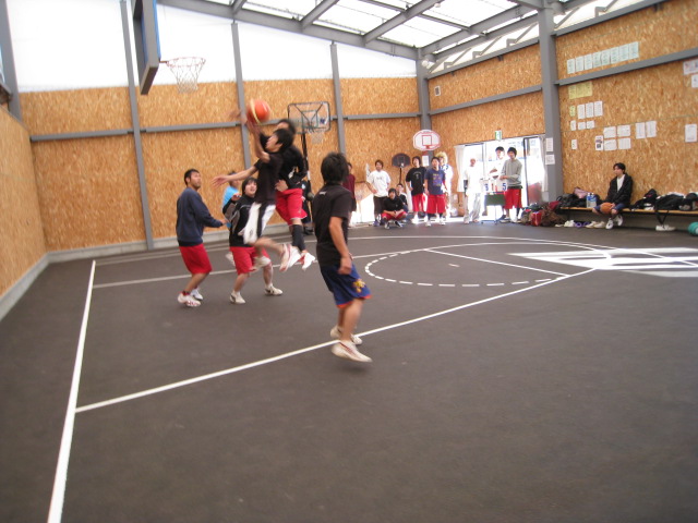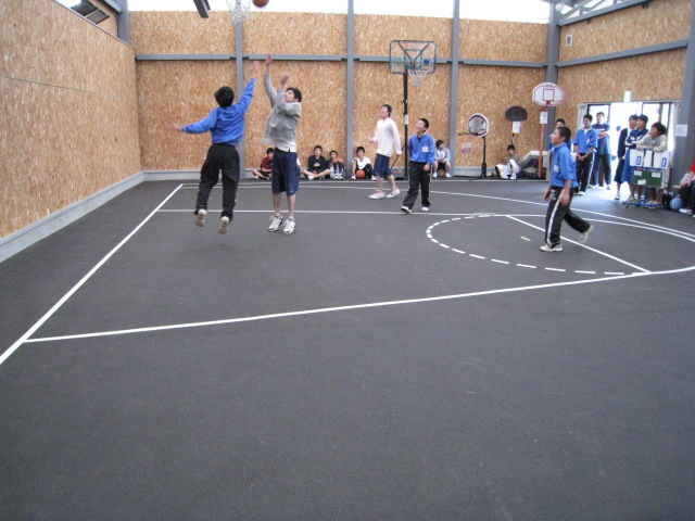 今回は9チーム参加で、3チームずつの予選ブロックを戦い各ブロックの1位チーム・2位チーム・3位チームにわかれて順位決定のリーグ戦を行いました。チーム数9チーム、参加人数40人以上と多く、時間的に余裕がなくなってしまいましたがバスケを楽しみました。